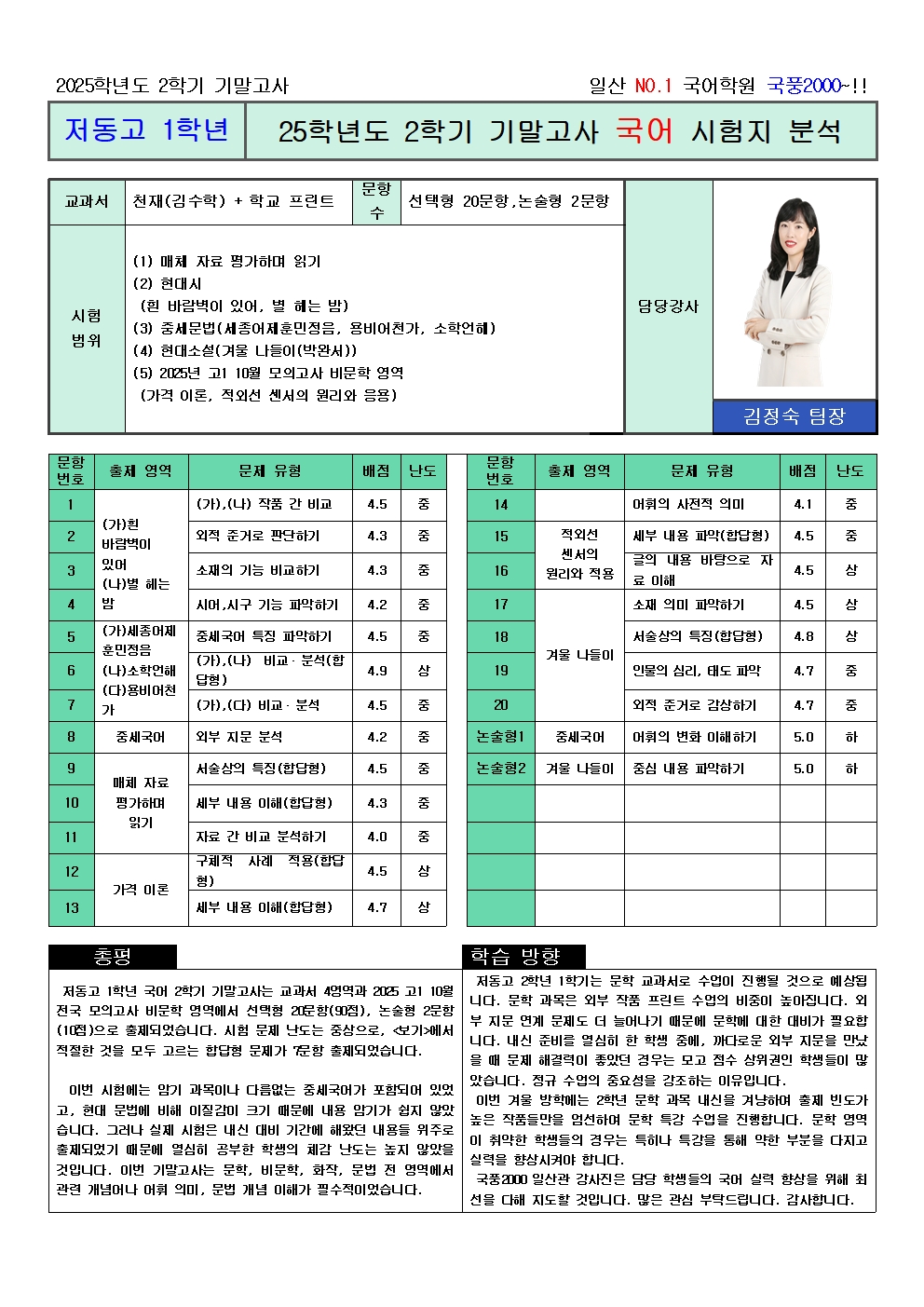 국풍2000 일산관 강사진은 담당 학생들의 국어 실력 향상을 위해 최선을 다해 지도할 것입니다. 많은 관심 부탁드립니다. 감사합니다.